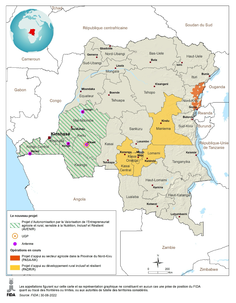 As part of its policy to combat poverty in rural areas, empower women and young people through the promotion of agricultural and rural entrepreneurship, sensitive to nutrition and resilient to climate change in the provinces located around the city province of Kinshasa, the government of the Democratic Republic of Congo has concluded a financing agreement with the International Fund for Agricultural Development (IFAD), and other donors (French Development Agency and Global Environment Fund), with a view to implement the Empowerment Project through the Promotion of Agricultural and Rural Entrepreneurship, Sensitive to Nutrition, Inclusive and Resilient to Climate Change..